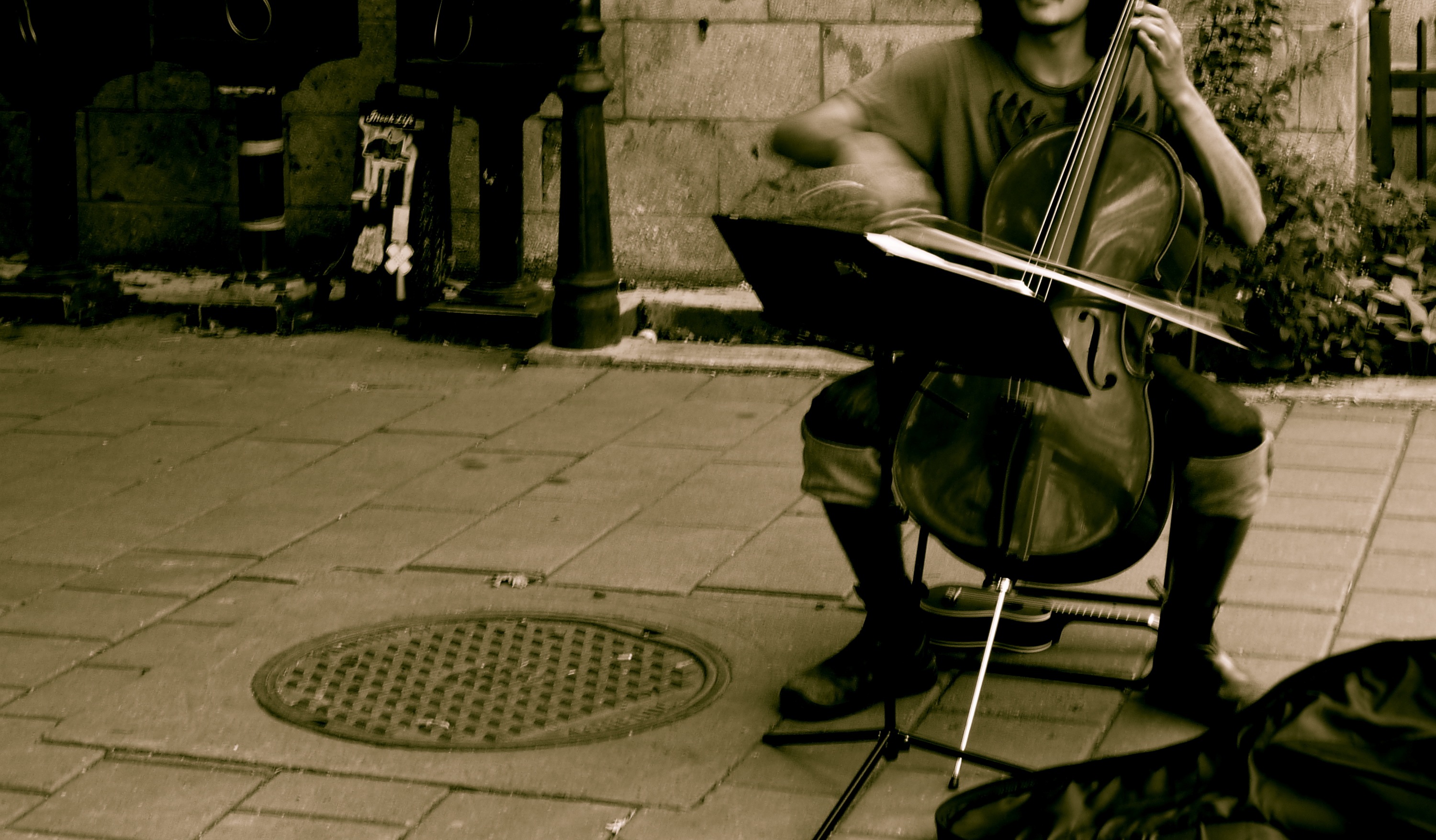When I took this photo he had just started playing the very recognizable prelude from Johann Sebastian Bach’s Cello Suite no. 1. If you haven’t heard the piece, it might still seem familiar to you as there are a few popular songs that use very similar phrasing. For example, the cello line in OneRepublic’s Secrets, which I also associate with the piano line in Adele’s Someone Like You. Maybe I’m stretching it, but I don’t think I am… anyway, music for thought.