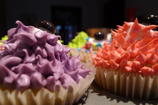 The delightful treats above you ask? Monster Cupcakes! Made, with the help of Ms. Julia, for my weekend host’s birthday this past April.. They were a big hit- a monster smash. I’m sure the 1995-me would have appreciated them… as well as my pun.